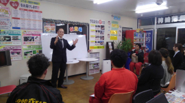 私(モリオカ塾長)や鳥羽の店舗長であるフルタニ副塾長が、たくさんの体験や言葉に触れ、良いと思ったものをみんなの前でスピーチする。